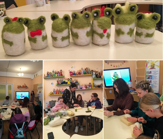 Нягледзячы на халоднае даждлівае надвор’е, прыйшлі ўсе, што сведчыць аб тым, што дзецям і падлеткам падабаецца праект і тое, што мы робім разам з майстрам лямцу, кіраўніком студыі «Час цяпла» Святланай Міхалевіч. Пачалася сустрэча са знаёмства з творчасцю беларускай пісьменніцы Наталлі Бучынскай. Выкарыстоўваючы прэзентацыю, бібліятэкар дзіцячага аддзелу Ганна Маскалёва, распавяла прысутным пра тое, якія кнігі стварыла маладая пісьменніца, зачытала ўрыўкі з казкі «Прынцэса Алівія і жабіны вочкі», а потым дзеці дапамаглі гераіні твора, дзяўчынцы Зосьцы пераўтварыцца ў прынцэсу Алівію, выконваючы розныя заданні. Пасля знаёмства з іншымі героямі кнігі: Феяй Ква, Квакацыяй і іншымі жабянятамі, усё ж такі вырашылі, што будзем валяць годнага рыцара Квыха, бо менавіта дзякуючы яму, Алівія-Зоська змагла вярнуцца ў сваё будзённае жыццё і зразумела, што любоў і згода ў сям’і, дзе мама, тата, два яе браты заўсёды гатовы клапаціцца адзін аб адным, нашмат важней жадання быць капрызнай прынцэсай. Десяць жабянят, непадобных адзін на аднаго, убачылі свет праз паўтары гадзіны сустрэчы. Сапраўдным сюрпрызам стаў для дзяцей прагляд невялікага відэасюжэту, які запісала для удзельнікаў Наталля Бучынская. Як і заўсёды, сустрэча завяршылася духмянай гарбатай з варэннем з трускалак.