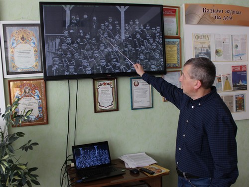 Продолжая рассказ о начальной истории военного городка, расположенного на проспекте Революции, археограф Александр Балябин акцентировал внимание на полковых храмах, которые действовали здесь в период дислокации 162-го пехотного Ахалцыхского полка, а затем 1-й отдельной кавалерийской бригады. Присутствующие узнали, что на рубеже XIX-XX веков полковые церкви пехотного и кавалерийских полков размещались в обширном внутреннем зале Штабного здания. В беседе также освещались обязанности военных священников, в частности, Андрея Богородского (50-й драгунский Иркутский полк) и Сергея Сабинина (49-й драгунский Архангелогородский полк).