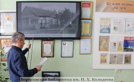 Об истории появления в правобережном Борисове церкви-школы рассказал присутствующим археограф Александр Балябин в беседе, которая состоялась 28 марта в духовно-просветительском центре библиотеки.