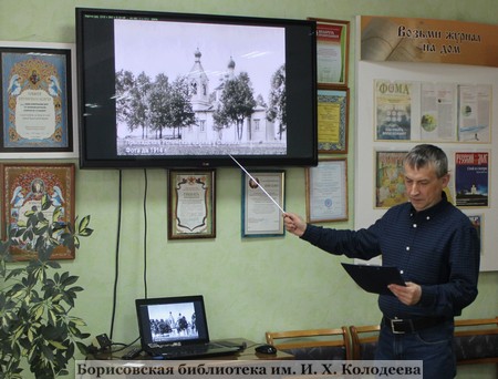 18 апреля в духовно-просветительском центре библиотеки состоялась очередная краеведческая беседа. Археограф Александр Балябин рассказал о православных храмах и каплицах, находившихся в ведении трех Благочиний Борисовского уезда.