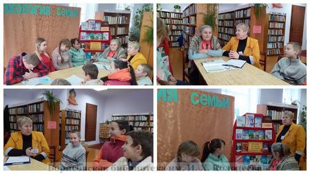 За круглым столом прошла беседа на тему «Экология семьи», где речь шла о здоровом образе жизни и о вредных привычках в семье. Узнали о разновидностях вредных привычек и сделали для себя вывод, что семья – это основное звено, где формируются полезные привычки и отвергаются вредные. Библиотекарь сделала обзор книжной выставки « В семье не место вредным привычкам».