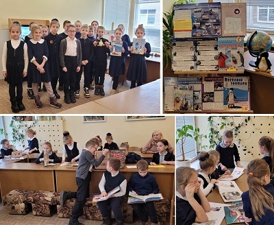В ходе мероприятия школьники узнали много интересного о климате и обитателях Антарктиды, а также об истории открытия южного полюса нашей Земли. Дети посмотрели ролик о пингвинах и познакомились с книжной выставкой «Холодильник Земли». В завершении встречи ребята читали книги и журналы.