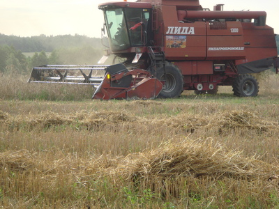 Экипаж комбайна ОАО "Зембинский" на уборке зерновых работает чётко и слаженно |