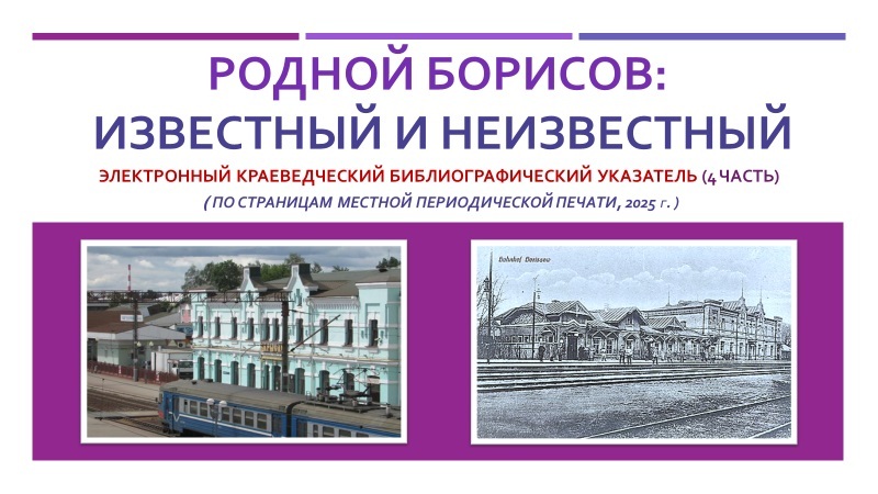 Вашему вниманию предлагается 4-й выпуск электронного краеведческого библиографического указателя “Родной Борисов: известный и неизвестный”.