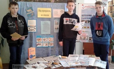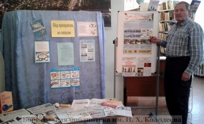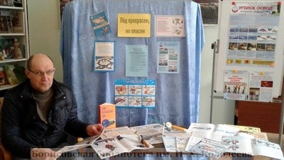 Библиотекарь Лариса Шкредова подготовила открытый просмотр литературы «Лёд прекрасен, но опасен». В течение дня пользователи библиотеки знакомились с правилами поведения на льду в зимний период. Читатель Владимир Корнюшко поделился особенностями зимней рыбалки и как уберечься от неприятностей на льду зимой. Участники дня безопасности предлагали свои варианты оказания первой помощи пострадавшим на льду и активно отвечали на вопросы викторины «Тонкий лёд опасность несёт». В ходе мероприятия библиотекари раздавали памятки «Правила поведения на замёрзших водоёмах».