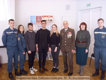 20 февраля 2020 г. в рамках единого Дня безопасности на абонементе Центральной библиотеки состоялась встреча учащихся 11 класса ГУО «Средняя школа №22 г. Борисова» с ветераном пожарной службы подполковником внутренней службы запаса Ф.Н. Абдрафиковым.
