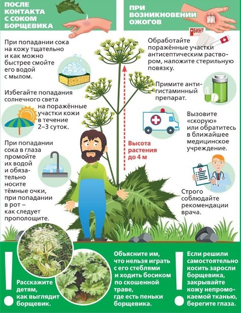 Растение выделяет прозрачный фототоксический сок, который при прикосновении к человеческой коже и под действием ультрафиолетового излучения вызывает ожоги 1-3 степени. Борщевик Сосновского представляет угрозу здоровью людей и вызывает экологические проблемы, т.к. из-за быстрого развития популяции (одно растение способно оставить более тысячи семян), вытесняет другие растения и сохраняет доминирующую позицию на захваченных территориях.