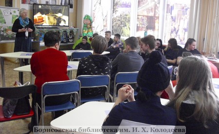 18 марта в рамках государственной программы «Здоровье народа и демографическая безопасность» абонемент центральной библиотеки провёл встречу учащихся СШ № 22 г. Борисова с представителями отдела общественного здоровья Борисовского зонального Центра гигиены и эпидемиологии.