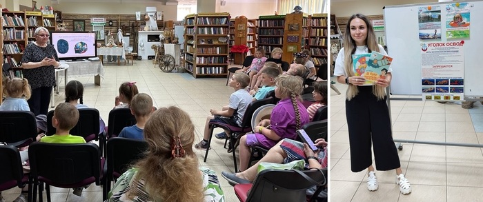 Кроме этого, воспитанникам пришкольных лагерей в детском отделе была предложена программа мультипликационного лектория «Здравствуй, лето безопасное!»