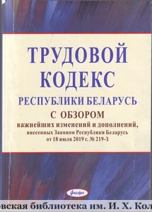 С Трудовым кодексом Республики Беларусь, который содержит обзор основных изменений и дополнений, внесенных Законом Республики Беларусь от 18 июля 2019 г. № 219-З, предлагаем познакомиться в Центре правовой информации Борисовской центральной районной библиотеки.
