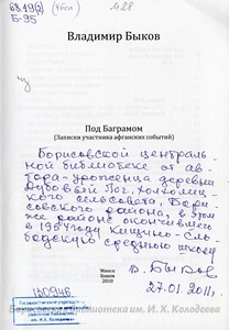 27 января 2021 года исполнилось 10 лет автографу Владимира Быкова в книге «Под Баграмом» (2010).