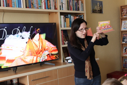 Участники мероприятия узнали о традиции празднования Дня девочек в Японии, а затем под руководством библиотекаря создали поздравительную открытку с традиционным украшением – куклами, изображающими императора и придворных, на многоярусной подставке «хинаказари».