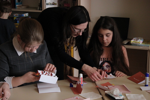 1 марта в зале литературы на иностранных языках для детей прошел мастер-класс по созданию объёмной открытки «Хинаказари».