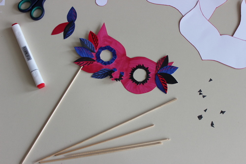 Для этого вам понадобится любой понравившийся шаблон маски, который можно найти в интернете (или нарисовать от руки), простой карандаш, разноцветные карандаши\фломастеры\маркеры, ножницы, клей, бумага, деревянная палочка или длинная коктейльная трубочка… и немного фантазии!