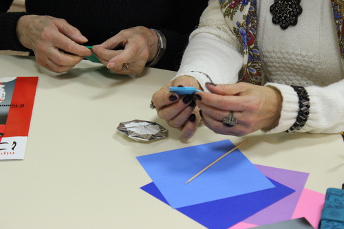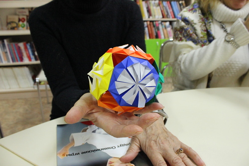 В течение дня все желающие имели возможность попробовать свои силы в создании бумажного шара "кусудама" из цветной бумаги.