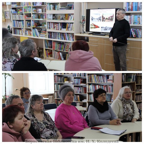 Сотрудник библиотеки Александр Балябин представил ретроспективную экскурсию по левобережному городу, его улицам и достопримечательностям, изображенным на открытках начала XX века. Их выпуск черно-белого и цветного формата в дореволюционном Борисове был налажен предпринимателями Л. Шейнеманом и Б. Левиным. На «Открытых письмах» отображены основные улицы, примечательные дома, культовые здания, инженерные сооружения, государственные учреждения, учебные заведения, предприятия, что позволяло нарисовать целостную картину населенного пункта. Присутствующие увидели город глазами борисовчан, живших в начале XX века, а потом посмотрели на городские пейзажи и достопримечательности с позиции XXI века. Некоторые из объектов городской архитектуры сохранились и легко идентифицируются, другие перестроены до неузнаваемости или совсем исчезли с карты нашего Борисова.