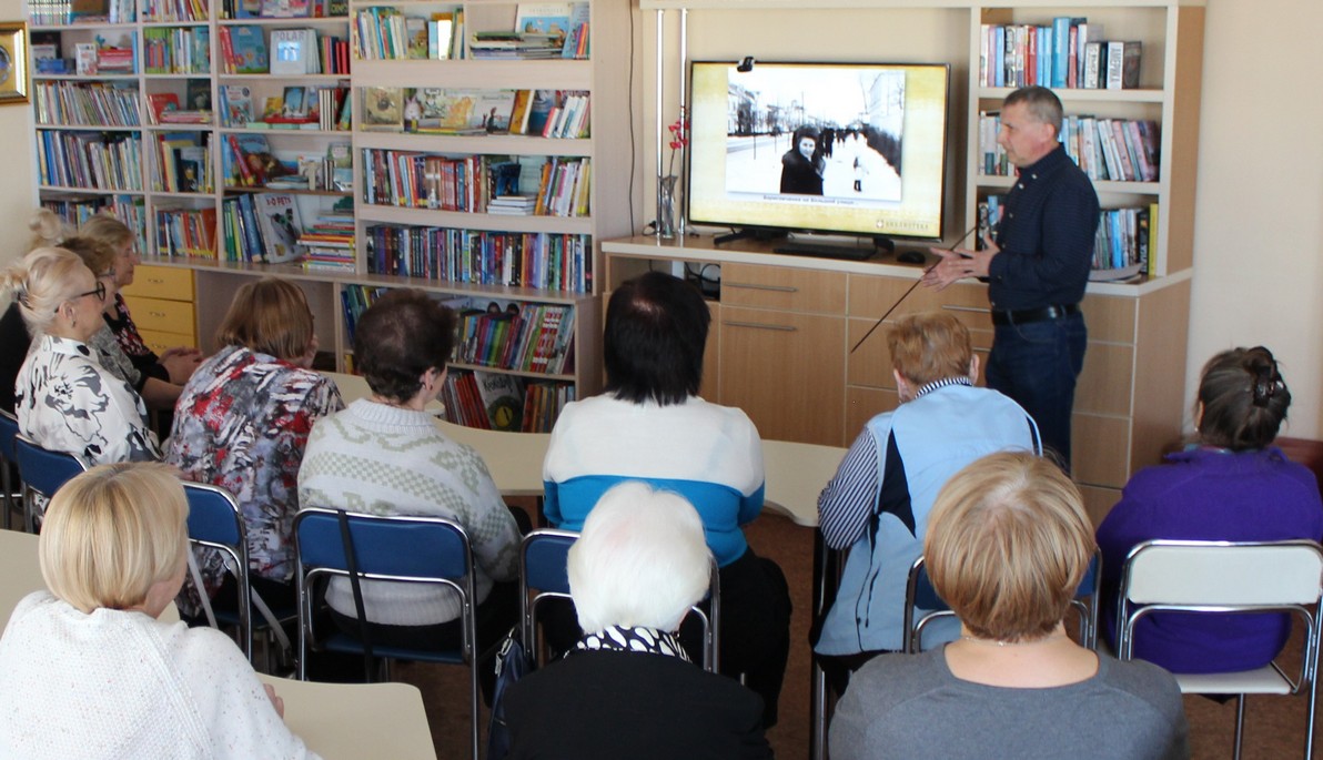 На очередной встрече 18 марта с посетителями отделения дневного пребывания ГУ «ТЦСОН Борисовского района» сотрудник библиотеки Александр Балябин предложил совершить виртуальную ретро-прогулку по Борисову периода 1970-х годов.