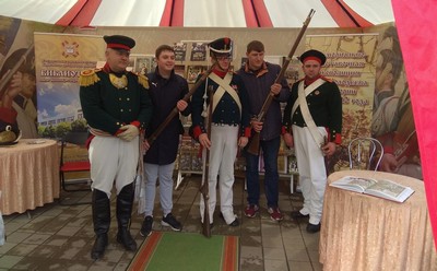 На одной из тематических площадок Борисовского подворья, рассказывающих об истории региона, была представлена выставка, посвященная событиям Войны 1812 года, которая демонстрировала книги из «Нового борисовского собрания материалов по эпохе наполеоновских войн» библиотеки. Экспозиция была организована совместно с участниками борисовского клуба военно-исторической реконструкции «Витебский пехотный полк» и студии исторического танца «Ампир». Борисовчане и гости фестиваля активно интересовались книжными изданиями, делали фото на память с униформистами.