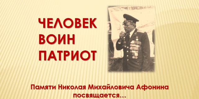 Ведущая Соколова Валентина Васильевна рассказала гостям мероприятия о боевом пути Афонина в годы Великой Отечественной войны, о его героизме и мужестве в борьбе с немецко-фашистскими захватчиками, его значительном вкладе в общественную жизнь г. Борисова. Мероприятие сопровождалось выставкой фотографий из архива семьи Афониных. Среди участников мероприятия также присутствовали члены семьи Н.М. Афонина (в том числе, старший сын – Валерий Николаевич Афонин), которые поделились своими воспоминаниями о нём.