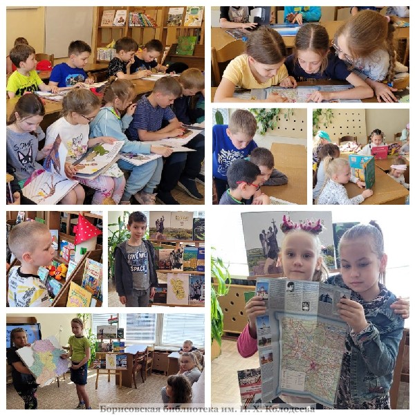 Ребята совершили виртуальное путешествие по родному городу, активно участвовали в викторине «Борисовщина», поиграли в игру «Найди на карте», собирали пазлы «Узнай меня», знакомились с подборкой книг о Борисове, изучали карту Борисовского района. В завершение встречи юные читатели самостоятельно читали понравившиеся книжки и журналы.