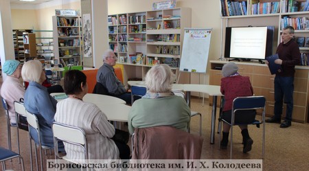 Об истории появления в правобережном Борисове церкви-школы рассказал присутствующим археограф Александр Балябин в беседе, которая состоялась 28 марта в духовно-просветительском центре библиотеки.