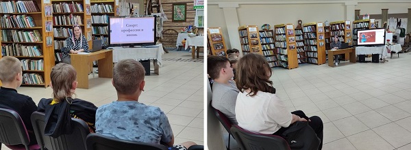 Библиотекарь Юлия Харламова рассказала учащимся что спорт – это не просто хобби или развлечение, это образ жизни, который может принести множество пользы и радости. Спорт – это великолепная возможность развить силу и волю через упорные тренировки.