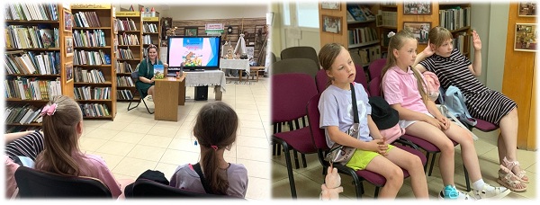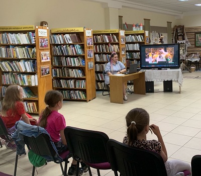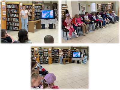 В завершение мероприятия ребята посмотрели короткометражный мультфильм о фантастических летающих книгах и обсудили его, а также познакомились с книжным фондом детско-юношеского отдела.