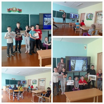 В ходе мероприятия дети просмотрели документальный фильм «Легендарный экипаж!», где рассказывается о подвиге экипажа Павла Рака, который в одиночку 16 часов сражался в оккупированном Борисове.