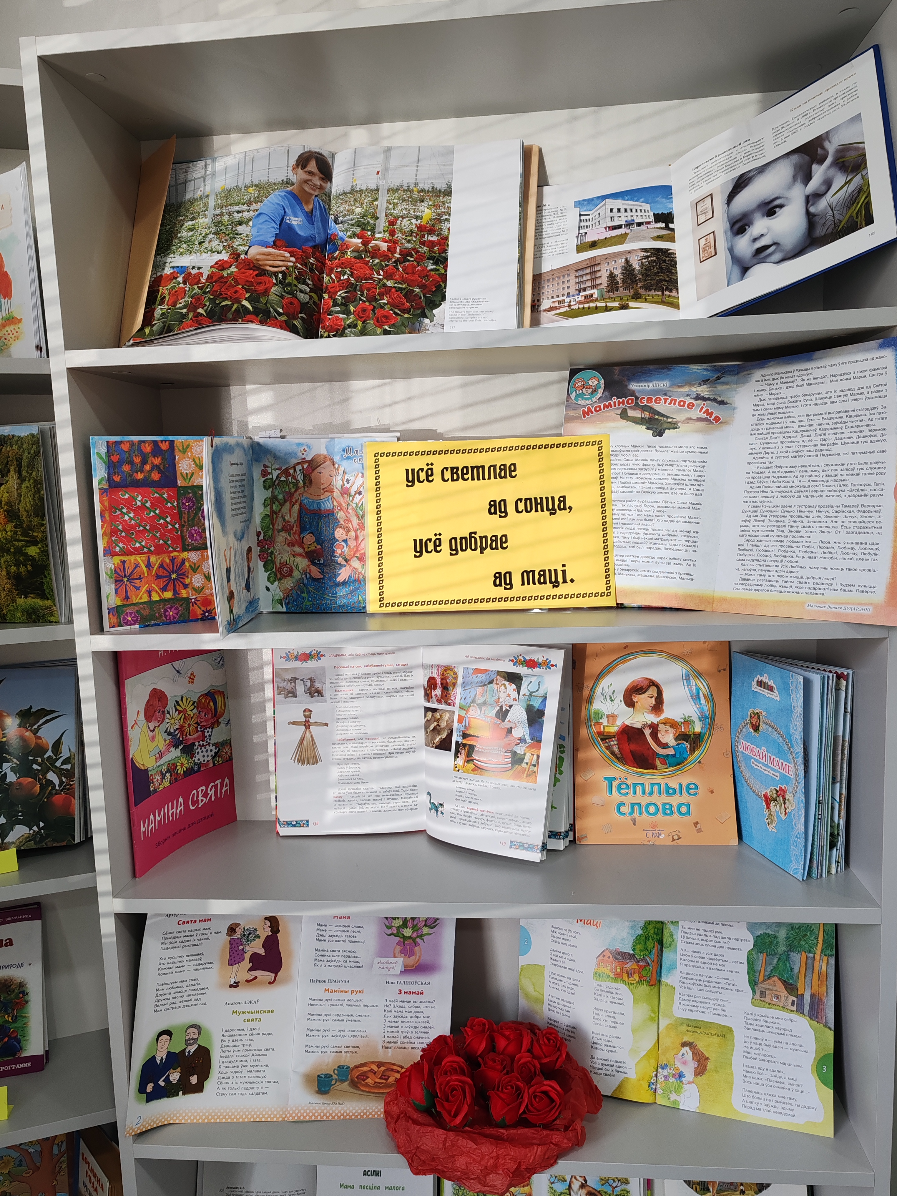 К Дню Матери с 7 по 15 октября в городской библиотеке № 6 организована книжная выставка “Усё светлае ад сонца, усё добрае ад маці”. Здесь представлены материалы о самом дорогом человеке в жизни каждого. Рассказы, стихи, благодарности и поздравления: всё о мамах и для мам.