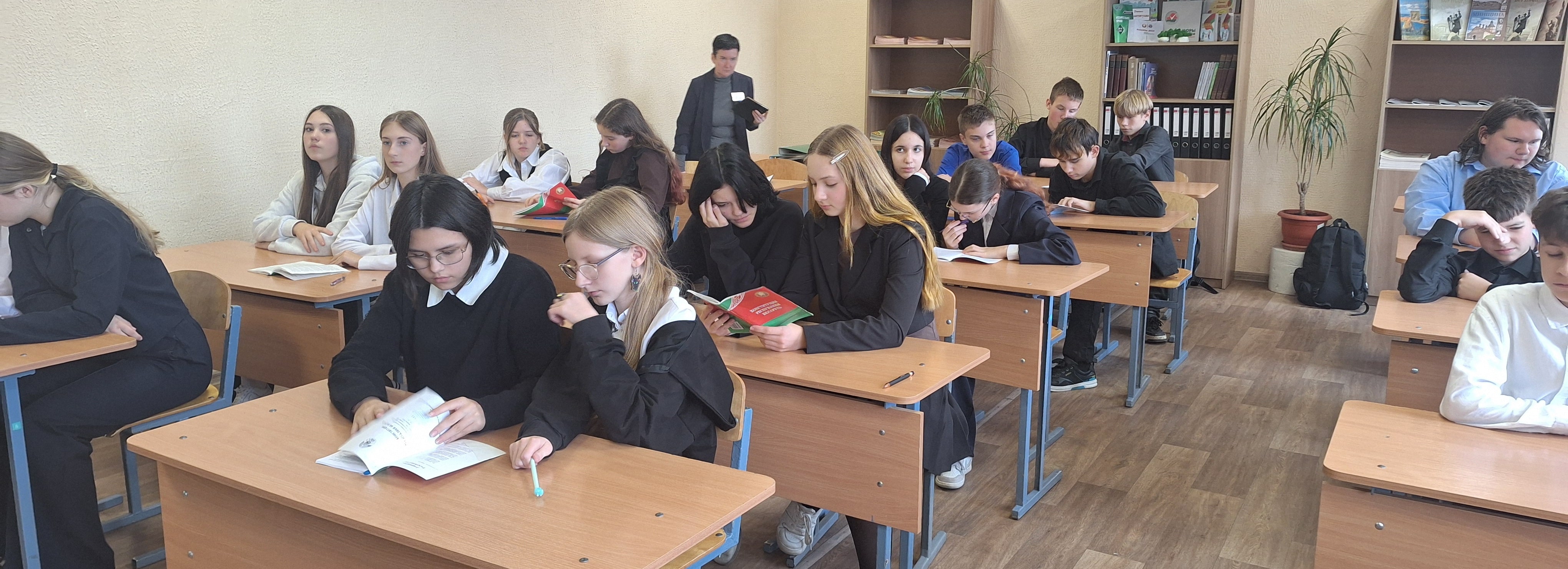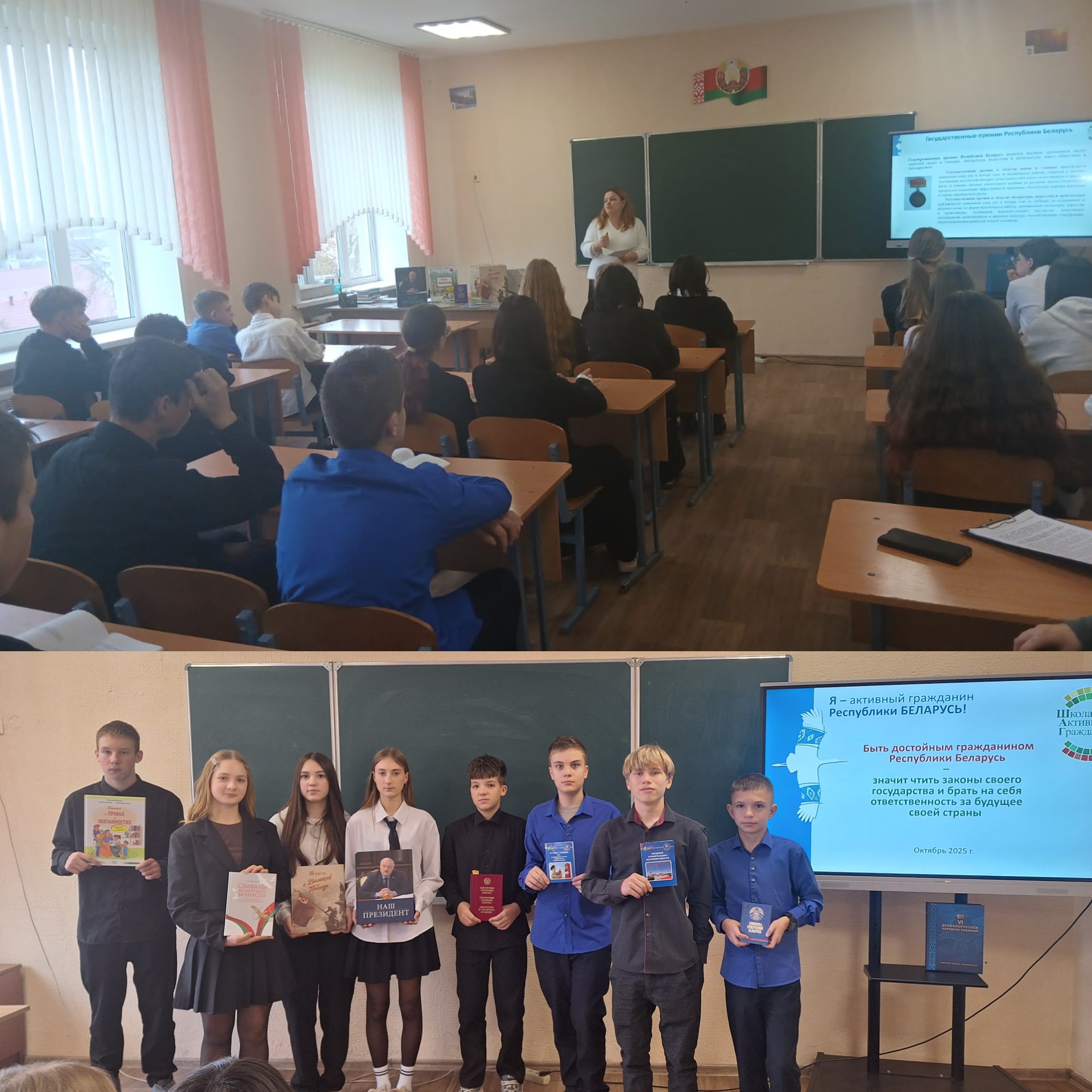 В рамках информационно-образовательного проекта "ШАГ" 23 октября для учащихся восьмых классов ГУО "Средняя школа N12 г.Борисова" библиотекарями сектора нестационарного обслуживания ГУК "Борисовская центральная районная библиотека им. И.Х. Колодеева" был проведён идеологический урок "Быть достойным гражданином Республики Беларусь!".