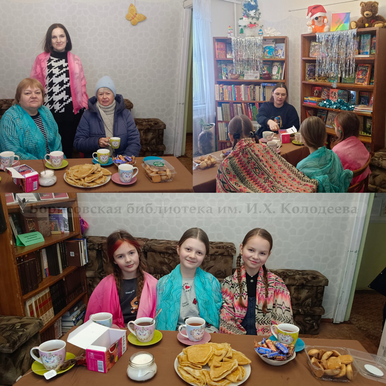 Библиотекарь Галина Кормалькова рассказала гостям о традициях празднования колядок , их значением, основными ритуалами и текстами. Продолжились посиделки чаепитием, за которым читатели библиотеки поделились своими впечатлениями и историей праздновании колядок из детства.