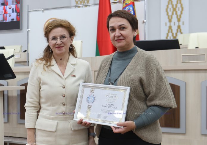 Директор ГУК «Борисовская центральная районная библиотека им. И.Х. Колодеева» Елена Копыток удостоена Почётной грамоты Белорусского фонда мира – за значительный личный вклад в укрепление мира и созидания в белорусском обществе.