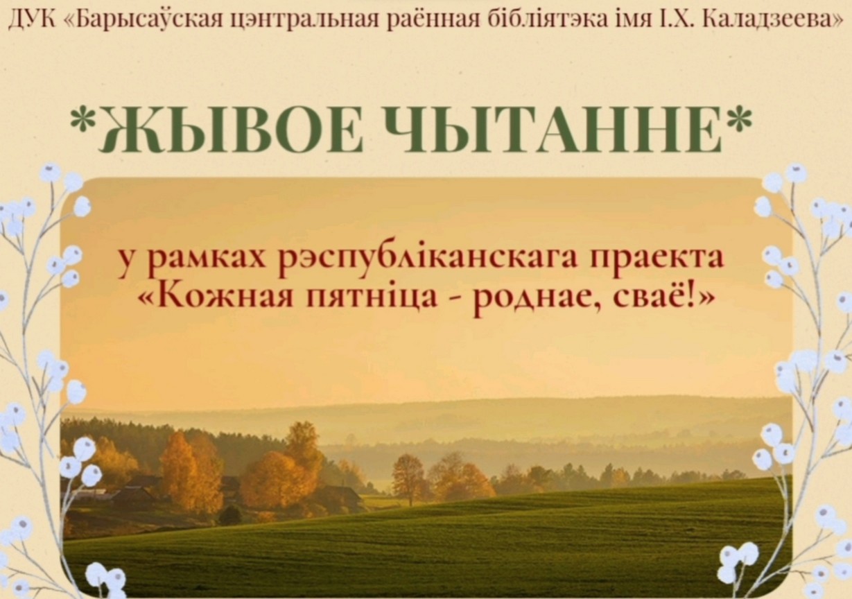 Добры дзень! Вас вітае Барысаўская цэнтральная раённая бібліятэка імя Каладзеева. Сёння пятніца, і мы запрашаем вас да ЖЫВОГА ЧЫТАННЯ у рамках рэспубліканскага праекта «Кожная пятніца - роднае, сваё!» Зараз мы прачытаем урывак з апавядання Івана Шамякіна "Наташа".