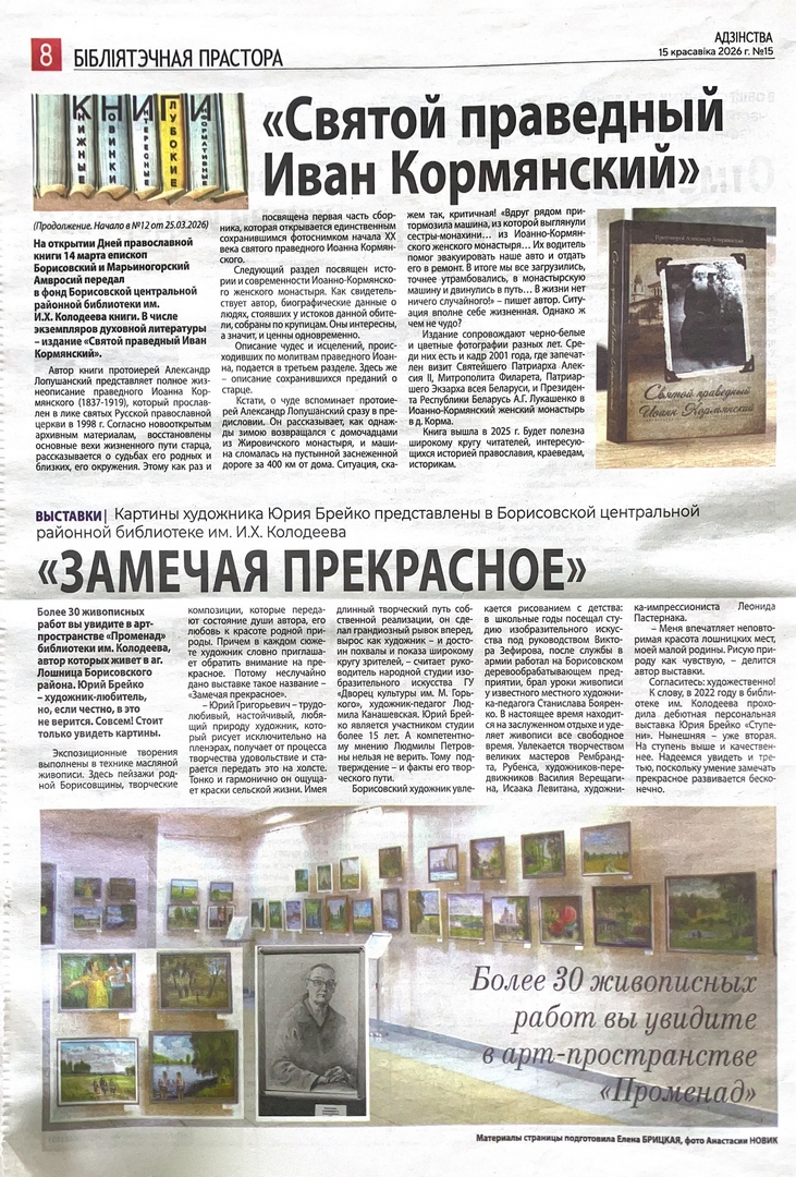 Новая публикация в местной районной газете "Адзiнства" о работе нашей библиотеки