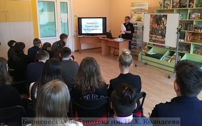Библиотекарь-краевед Алла Смирнова с помощью электронной презентации «Холокост. Память без срока давности» рассказала ребятам об истории возникновения Холокоста, о создании гетто в урочище Бабий Яр, Борисове. Дети внимательно слушали рассказ библиотекаря о переселении в гетто, о жизни узников лагеря и о ликвидации гетто в Борисове. Большое внимание А.Смирнова уделила рассказу о Праведниках народов мира, имена которых увековечены в Музее Яд ва- Шем израильском национальном мемориале Катастрофы и Героизма.