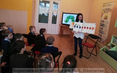 Библиотекарь Анна Москалёва познакомила детей с биографией писателя и прочитала для них увлекательную историю о прожорливой гусенице, которая с каждым днем съедала все больше фруктов, а к концу недели и вовсе скушала все сладости. После гусеница превратилась в прекрасную бабочку. В завершении мероприятия ребята посмотрели мультфильм «Очень голодная гусеница».