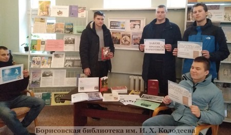 Учащиеся УО «Борисовский государственный колледж» обсудили проблему наркомании и незаконного оборота наркотиков. Участие в мероприятии помогло молодым людям увидеть зло с разных сторон, услышать точки зрения всех присутствующих и выработать общее мнение: ведь безопасных наркотиков не существует. Жертвами наркомании могут стать практически все. В рубрике «Нет такого падения, после которого нельзя подняться!» присутствующие высказывали свои мысли о необходимости поддержки людей, которые решили покончить с наркоманией. В заключение мероприятия ребята ознакомились с материалами книжной выставки «Знать и противостоять».