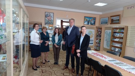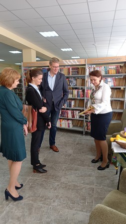 Директор библиотеки Елена Сергеевна Копыток провела для почётных гостей экскурсию по залам учреждения, познакомив сотрудников Посольства с направлениями деятельности, с работой специализированных залов и отделов. Зарубежных гостей удивило и восхитило многое, особенно значимость библиотеки как социо-культурного центра, что, по их мнению, не свойственно для библиотек районного уровня. Экскурсанты по достоинству оценили и работу музейно-выставочных комплексов и художественных галерей библиотеки, и деятельность социальных проектов, разработанных для разных групп населения.