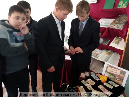 В увлекательной форме со сложным миром экономики и финансов знакомились ученики 7»Б» класса ГУО «Средняя школа №17 г. Борисова». Вместе с библиотекарем Татьяной Кравченко школьников ожидали остановки на следующих станциях: «Денежная», «Товарная» и «Банковская». На каждой станции ребята разбирались, как устроен мир денег. Как их заработать? Как накопить? Как потратить? Что такое бюджет и кредит? Ребята вспоминали названия денежных единиц, которыми расплачивались герои литературных произведений «Малыш и Карлсон», «Приключения Пиноккио», «Мери Поппинс», «Незнайка на Луне», «Остров сокровищ», «Али-баба и сорок разбойников» и другие. Все эти произведения представлены на книжной выставке «Что мы знаем о деньгах?».
