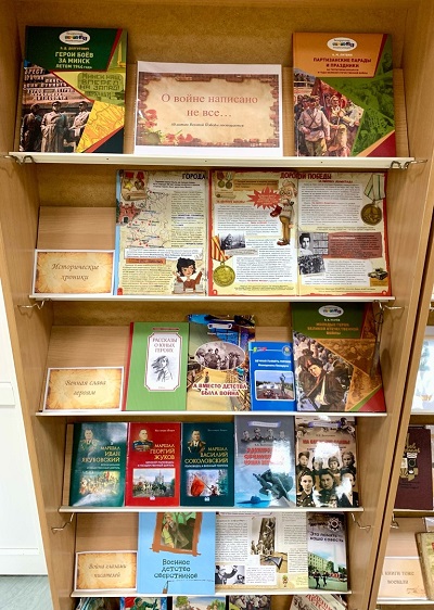 В детско-юношеском отделе центральной библиотеки в январе месяце текущего года открылась новая выставка-память к 80-летию Великой Победы «О войне написано не все…», которая включает в себя следующие разделы: «Исторические хроники», «Вечная слава героям» и «Война глазами писателей».