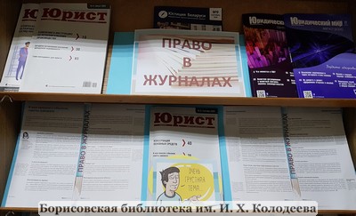 Выставка «Право в журналах» оформлена в центре правовой информации Борисовской центральной районной библиотеки.
