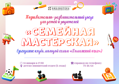 14 января в 17:30 состоится заседание клуба молодой семьи «Домашний очаг» «Семейная мастерская».