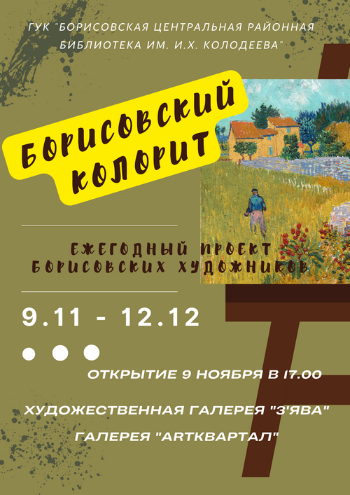 9 ноября начинает работу главный выставочный проект библиотеки под названием "Борисовский колорит"!