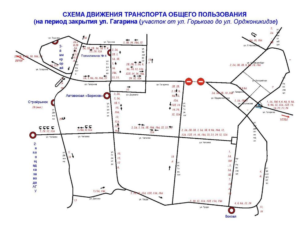 С 11 мая 2020 года участок дороги по улице Гагарина от пересечения с улицей М.Горького до пересечения с улицей Орджоникидзе будет закрыт в связи с производством работ на объекте «Реконструкция ул. Гагарина автодорога Р-53 (Слобода-Новосады) от ПК 435 до улицы Толстикова в г.Борисове» V очередь.