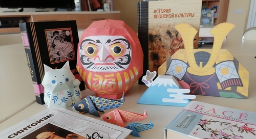 В состав экспозиции входят тематические книги и периодические издания, фигурки оригами и небольшие арт-объекты, представляющие классические японские культурные символы.