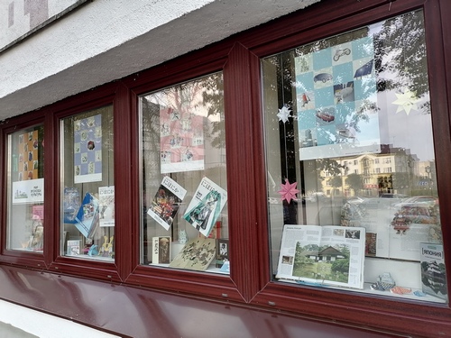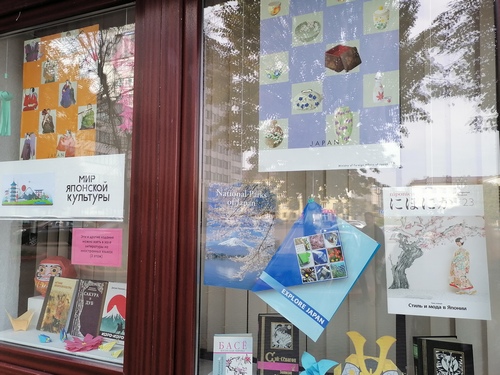 В окнах первого этажа центральной библиотеки оформлена выставка-инсталляция "Мир японской культуры".