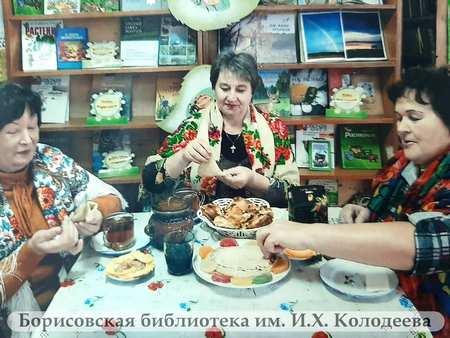 Началось оно с рассказа библиотекаря Макаровой С.И. об истории праздника, его традициях, о назначении каждого из семи дней Масличной недели. Участники клуба вспоминали пословицы о празднике, поделились рецептами своих фирменных блинов, дегустировали их с разными начинками.