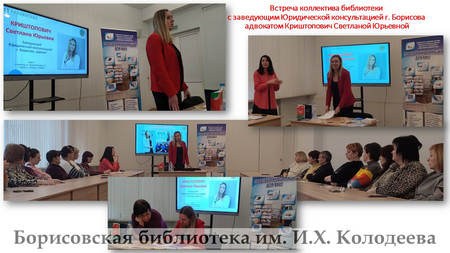 26 февраля в конференц-зале Борисовской центральной районной библиотеки им. И.Х. Колодеева прошла встреча в трудовом коллективе с заведующим Юридической консультацией г. Борисова, адвокатом Светланой Криштопович.