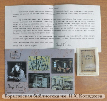 Недавно Государственный литературно-мемориальный музей Якуба Коласа объявил об организации конкурса «Ліст да Якуба Коласа». В нём приняла участие и сотрудник Борисовской центральной районной библиотеки им. И.Х. Колодеева, руководитель литературного объединения «Натхненне» Елена Брицкая. Вот какое письмо она получила по почте в ответ – демонстрируется на фото. А с посланным на конкурс стихотворением можно познакомиться здесь же.