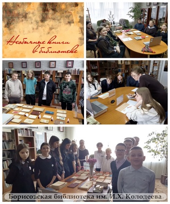 16, 20 и 27 мая в музейно-выставочной экспозиции «Редкая книга» прошла слайд-беседа на тему «Необычные книги в библиотеке» для учащихся 8 и 6 классов Гимназии №3. Участники встречи узнали интересные факты о самых старых, дорогих и необычных по форме и содержанию книгах, посмотрели тематический видеоролик о процессе создания такой книги, а также познакомились с интересными книжными экспонатами и выставкой «Свидетели военных лет» (о книгах, изданных в годы Великой Отечественной войны) в музейно-выставочной экспозиции «Редкая книга».